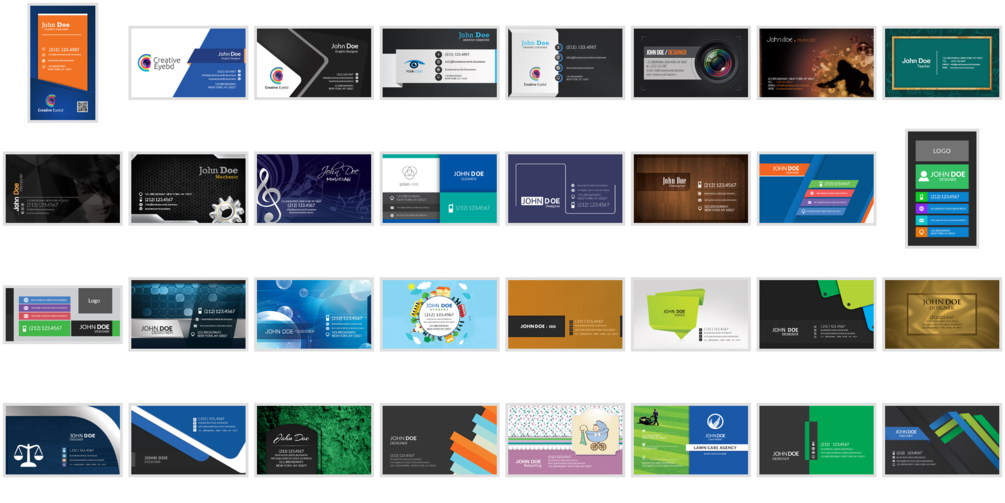 Collection of 50 editable business card templates for Photoshop including different topics and design ideas. Available in PSD format (ready for editing in Photoshop)